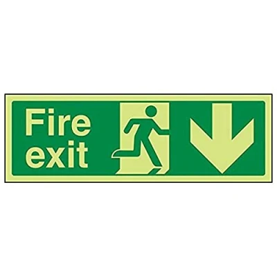 Vsafety 14002AX G'Fire Exit Arrow Down' Sign, Landscape, 300 mm x 100 (Pack of 3)
