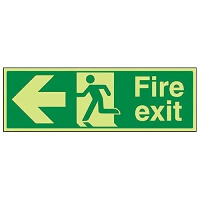 Vsafety 14003BJ G'Fire Exit Arrow Left' Sign, Landscape, 450 mm x 150 (Pack of 3)