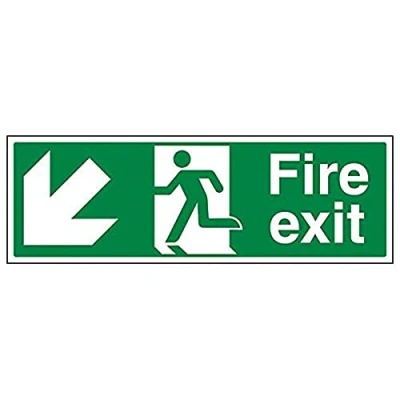Vsafety 14005BJ S'Fire Exit Arrow Down Left' Sign, Landscape, 450 mm x 150 (Pack of 3)