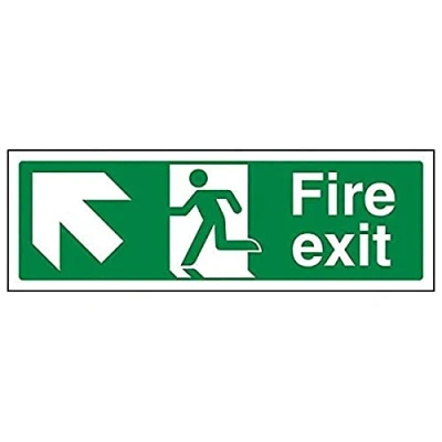 Vsafety 14007AX S'Fire Exit Arrow Up Left' Sign, Landscape, 300 mm x 100 (Pack of 3)