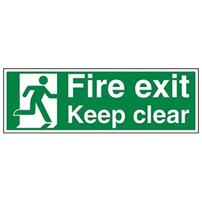 Helps to fulfil obligations to identify escape routes in a fire emergency for all members of staff and visitors as per Health and Safety (Safety Signs & Signals) Regulations 1996 Conforms to EN ISO 7010:2012 by featuring a green background with a white pictogram or text positioned centrally Landscape Orientation. Sign reads "Fire Exit Keep Clear" Highly durable Self Adhesive Vinyl material and screen printed message will stand the test of time Sign measures 600 x 200mm. Self Adhesive material will adhere securely to most surfaces