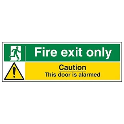 Helps to fulfil obligations to identify escape routes in a fire emergency for all members of staff and visitors as per Health and Safety (Safety Signs & Signals) Regulations 1996 Conforms to EN ISO 7010:2012 by featuring a green background with a white pictogram or text positioned centrally Landscape Orientation. Sign reads "Fire Exit Only. Door Alarmed" Highly durable 1mm plastic material and screen printed message will stand the test of time Sign measures 600 x 200mm.