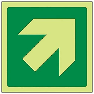 Helps to fulfil obligations to identify escape routes in a fire emergency for all members of staff and visitors as per Health and Safety (Safety Signs & Signals) Regulations 1996 Conforms to EN ISO 7010:2012 by featuring a green background with a white pictogram or text positioned centrally Square Orientation. Sign features ISO compliant Diagonal Arrow Highly durable Glow In The Dark 1mm plastic material and screen printed message will stand the test of time Sign measures 100 x 100mm.
