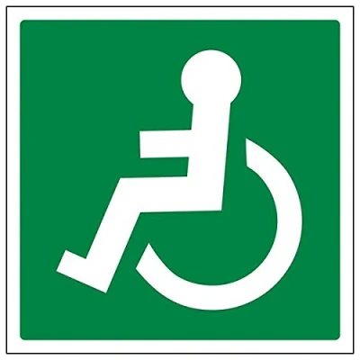 Helps to fulfil obligations to identify escape routes in a fire emergency for all members of staff and visitors as per Health and Safety (Safety Signs & Signals) Regulations 1996 Conforms to EN ISO 7010:2012 by featuring a green background with a white pictogram or text positioned centrally Square Orientation. Sign features ISO compliant Left Facing Wheel Chair Logo Highly durable Self Adhesive Vinyl material and screen printed message will stand the test of time Sign measures 200 x 200mm. Self Adhesive material will adhere securely to most surfaces