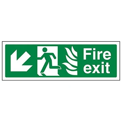 Vsafety 14024AX R'NHS Fire Exit Arrow Down Left' Sign, Landscape, 300 mm x 100 (Pack of 3)