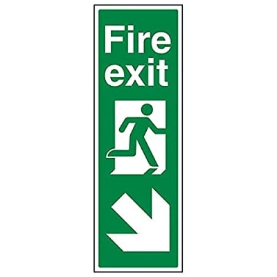 Vsafety 14042AP S'Fire Exit Arrow Down Right' Sign, Portrait, 150 mm x 450 (Pack of 3)