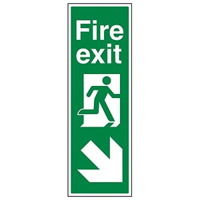 Vsafety 14042AV R'Fire Exit Arrow Down Right' Sign, Portrait, 200 mm x 600 (Pack of 3)