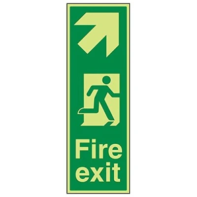 Vsafety 14044AV G'Fire Exit Arrow Up Right' Sign, Portrait, 200 mm x 600 (Pack of 3)