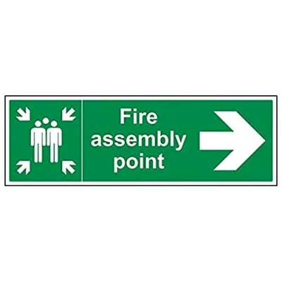 Helps to fulfil legal obligations to inform of the direction in which safety can be reached as per Health and Safety (Safety Signs & Signals) Regulations 1996 Conforms to EN ISO 7010:2012 by featuring a green background with a white pictogram or text positioned centrally Landscape Orientation. Sign reads "Fire Assembly Point" Highly durable Self Adhesive Vinyl material and screen printed message will stand the test of time Sign measures 600 x 200mm. Self Adhesive material will adhere securely to most surfaces