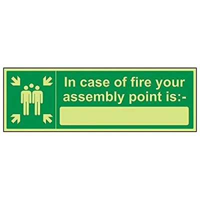 Helps to fulfil legal obligations to inform of the direction in which safety can be reached as per Health and Safety (Safety Signs & Signals) Regulations 1996 Conforms to EN ISO 7010:2012 by featuring a green background with a white pictogram or text positioned centrally Landscape Orientation. Sign reads "In Case Of Fire Your Assembly Point Is:" Highly durable Glow In The Dark 1mm plastic material and screen printed message will stand the test of time Sign measures 600 x 200mm.