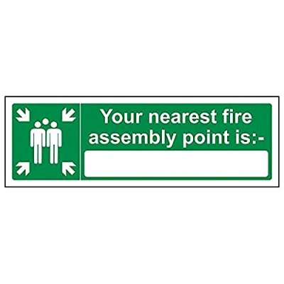Helps to fulfil legal obligations to inform of the direction in which safety can be reached as per Health and Safety (Safety Signs & Signals) Regulations 1996 Conforms to EN ISO 7010:2012 by featuring a green background with a white pictogram or text positioned centrally Landscape Orientation. Sign reads "Your Nearest Fire Assembly Point Is:" Highly durable Self Adhesive Vinyl material and screen printed message will stand the test of time Sign measures 300 x 100mm. Self Adhesive material will adhere securely to most surfaces