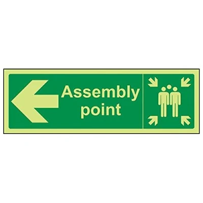 Helps to fulfil legal obligations to inform of the direction in which safety can be reached as per Health and Safety (Safety Signs & Signals) Regulations 1996 Conforms to EN ISO 7010:2012 by featuring a green background with a white pictogram or text positioned centrally Landscape Orientation. Sign reads "Assembly Point" Highly durable Glow In The Dark 1mm plastic material and screen printed message will stand the test of time Sign measures 300 x 100mm.