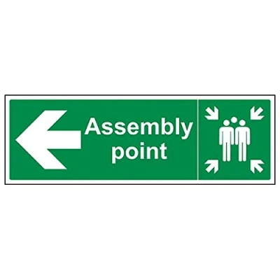 Helps to fulfil legal obligations to inform of the direction in which safety can be reached as per Health and Safety (Safety Signs & Signals) Regulations 1996 Conforms to EN ISO 7010:2012 by featuring a green background with a white pictogram or text positioned centrally Landscape Orientation. Sign reads "Assembly Point" Highly durable Self Adhesive Vinyl material and screen printed message will stand the test of time Sign measures 450 x 150mm. Self Adhesive material will adhere securely to most surfaces
