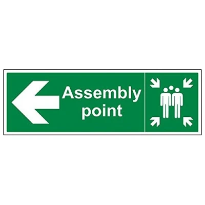 Helps to fulfil legal obligations to inform of the direction in which safety can be reached as per Health and Safety (Safety Signs & Signals) Regulations 1996 Conforms to EN ISO 7010:2012 by featuring a green background with a white pictogram or text positioned centrally Landscape Orientation. Sign reads "Assembly Point" Highly durable Self Adhesive Vinyl material and screen printed message will stand the test of time Sign measures 600 x 200mm. Self Adhesive material will adhere securely to most surfaces
