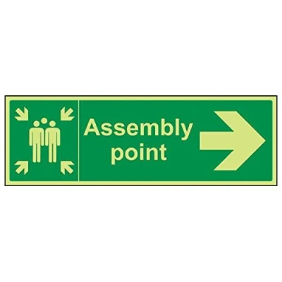 Helps to fulfil legal obligations to inform of the direction in which safety can be reached as per Health and Safety (Safety Signs & Signals) Regulations 1996 Conforms to EN ISO 7010:2012 by featuring a green background with a white pictogram or text positioned centrally Landscape Orientation. Sign reads "Assembly Point" Highly durable Glow In The Dark 1mm plastic material and screen printed message will stand the test of time Sign measures 450 x 150mm.