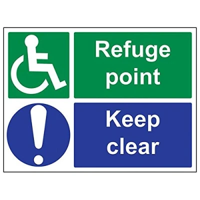 Helps to fulfil legal obligations to inform of the direction in which safety can be reached as per Health and Safety (Safety Signs & Signals) Regulations 1996 Conforms to EN ISO 7010:2012 by featuring a green background with a white pictogram or text positioned centrally Landscape Orientation. Sign reads "Refuge Point. Keep Clear" Highly durable 1mm plastic material and screen printed message will stand the test of time Sign measures 400 x 300mm.