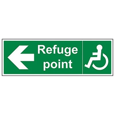 Helps to fulfil legal obligations to inform of the direction in which safety can be reached as per Health and Safety (Safety Signs & Signals) Regulations 1996 Conforms to EN ISO 7010:2012 by featuring a green background with a white pictogram or text positioned centrally Landscape Orientation. Sign reads "Refuge Point" Highly durable Self Adhesive Vinyl material and screen printed message will stand the test of time Sign measures 600 x 200mm. Self Adhesive material will adhere securely to most surfaces