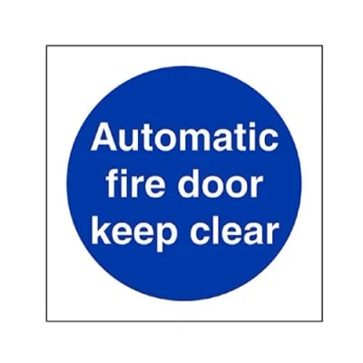 Helps to fulfil obligations to show vital escape route information about fire doors for all employees and visitors as per Health and Safety (Safety Signs & Signals) Regulations 1996 Conforms to EN ISO 7010:2012 Square Orientation. Sign reads "Automatic Fire Door Keep Clear" Highly durable Self Adhesive Vinyl material and screen printed message will stand the test of time Sign measures 80 x 80mm. Self Adhesive material will adhere securely to most surfaces