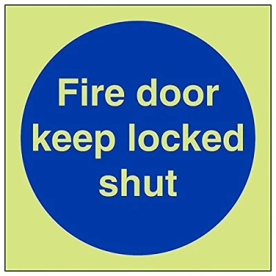 Helps to fulfil obligations to show vital escape route information about fire doors for all employees and visitors as per Health and Safety (Safety Signs & Signals) Regulations 1996 Conforms to EN ISO 7010:2012 Square Orientation. Sign reads "Fire Door Keep Locked Shut" Highly durable Glow In The Dark 1mm plastic material and screen printed message will stand the test of time Sign measures 100 x 100mm.