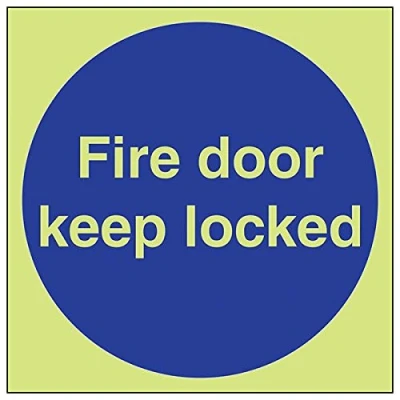 Helps to fulfil obligations to show vital escape route information about fire doors for all employees and visitors as per Health and Safety (Safety Signs & Signals) Regulations 1996 Conforms to EN ISO 7010:2012 Square Orientation. Sign reads "Fire Door Keep Locked" Highly durable Glow In The Dark 1mm plastic material and screen printed message will stand the test of time Sign measures 150 x 150mm.