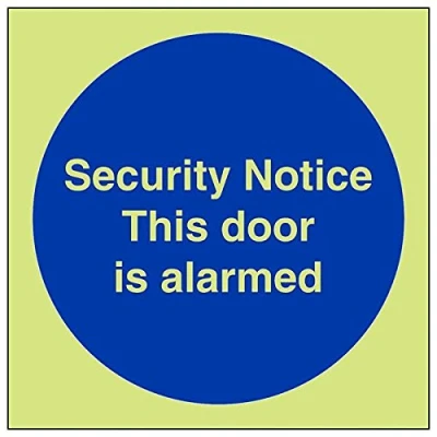 Helps to fulfil obligations to show vital escape route information about fire doors for all employees and visitors as per Health and Safety (Safety Signs & Signals) Regulations 1996 Conforms to EN ISO 7010:2012 Square Orientation. Sign reads "Security Notice. This Door Is Alarmed" Highly durable Glow In The Dark 1mm plastic material and screen printed message will stand the test of time Sign measures 100 x 100mm.