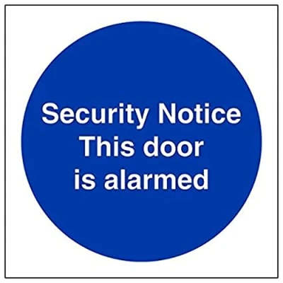 Helps to fulfil obligations to show vital escape route information about fire doors for all employees and visitors as per Health and Safety (Safety Signs & Signals) Regulations 1996 Conforms to EN ISO 7010:2012 Square Orientation. Sign reads "Security Notice. This Door Is Alarmed" Highly durable Self Adhesive Vinyl material and screen printed message will stand the test of time Sign measures 100 x 100mm. Self Adhesive material will adhere securely to most surfaces