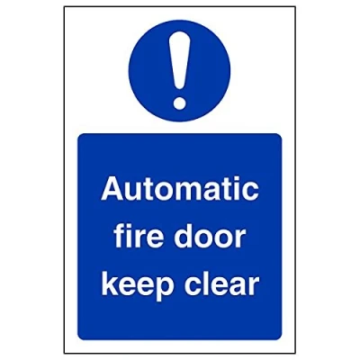 Helps to fulfil obligations to show vital escape route information about fire doors for all employees and visitors as per Health and Safety (Safety Signs & Signals) Regulations 1996 Conforms to EN ISO 7010:2012 Portrait Orientation. Sign reads "Automatic Fire Door Keep Clear" Highly durable 1mm plastic material and screen printed message will stand the test of time Sign measures 100 x 150mm.