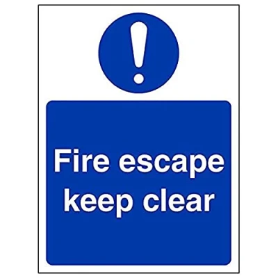 Helps to fulfil obligations to show vital escape route information about fire doors for all employees and visitors as per Health and Safety (Safety Signs & Signals) Regulations 1996 Conforms to EN ISO 7010:2012 Portrait Orientation. Sign reads "Fire Escape Keep Clear" Highly durable Self Adhesive Vinyl material and screen printed message will stand the test of time Sign measures 150 x 200mm. Self Adhesive material will adhere securely to most surfaces