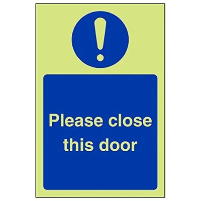 Helps to fulfil obligations to show vital escape route information about fire doors for all employees and visitors as per Health and Safety (Safety Signs & Signals) Regulations 1996 Conforms to EN ISO 7010:2012 Portrait Orientation. Sign reads "Please Close This Door" Highly durable Glow In The Dark 1mm plastic material and screen printed message will stand the test of time Sign measures 100 x 150mm.