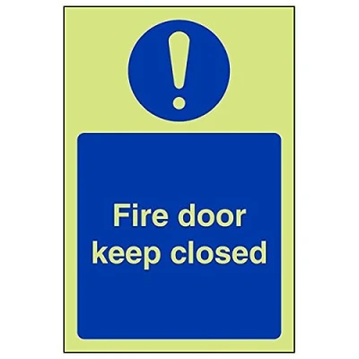 Helps to fulfil obligations to show vital escape route information about fire doors for all employees and visitors as per Health and Safety (Safety Signs & Signals) Regulations 1996 Conforms to EN ISO 7010:2012 Portrait Orientation. Sign reads "Fire Door Keep Closed" Highly durable Glow In The Dark 1mm plastic material and screen printed message will stand the test of time Sign measures 100 x 150mm.