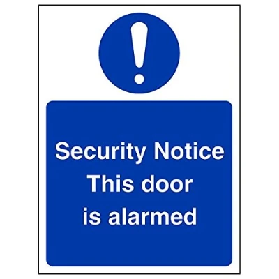 Helps to fulfil obligations to show vital escape route information about fire doors for all employees and visitors as per Health and Safety (Safety Signs & Signals) Regulations 1996 Conforms to EN ISO 7010:2012 Portrait Orientation. Sign reads "Security Notice. This Door Is Alarmed" Highly durable Self Adhesive Vinyl material and screen printed message will stand the test of time Sign measures 150 x 200mm. Self Adhesive material will adhere securely to most surfaces