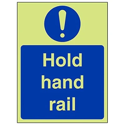 Helps to fulfil obligations to show vital escape route information about fire doors for all employees and visitors as per Health and Safety (Safety Signs & Signals) Regulations 1996 Conforms to EN ISO 7010:2012 Portrait Orientation. Sign reads "Hold Hand Rail" Highly durable Glow In The Dark 1mm plastic material and screen printed message will stand the test of time Sign measures 150 x 200mm.
