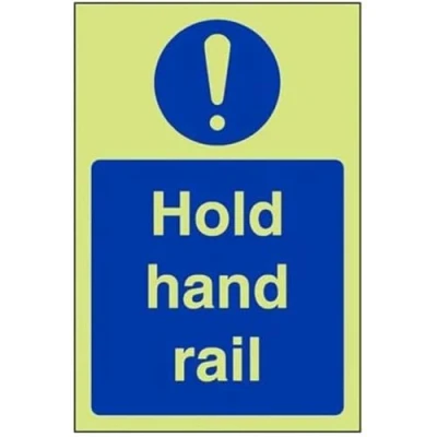 Helps to fulfil obligations to show vital escape route information about fire doors for all employees and visitors as per Health and Safety (Safety Signs & Signals) Regulations 1996 Conforms to EN ISO 7010:2012 Portrait Orientation. Sign reads "Hold Hand Rail" Highly durable Glow In The Dark 1mm plastic material and screen printed message will stand the test of time Sign measures 150 x 200mm