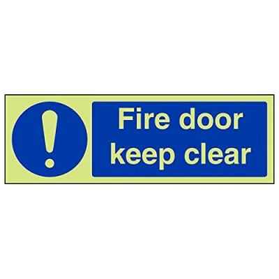 Helps to fulfil obligations to show vital escape route information about fire doors for all employees and visitors as per Health and Safety (Safety Signs & Signals) Regulations 1996 Conforms to EN ISO 7010:2012 Landscape Orientation. Sign reads "Fire Door Keep Clear" Highly durable Glow In The Dark 1mm plastic material and screen printed message will stand the test of time Sign measures 300 x 100mm.