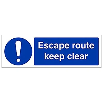 Helps to fulfil obligations to show vital escape route information about fire doors for all employees and visitors as per Health and Safety (Safety Signs & Signals) Regulations 1996 Conforms to EN ISO 7010:2012 Landscape Orientation. Sign reads "Escape Route Keep Clear" Highly durable Self Adhesive Vinyl material and screen printed message will stand the test of time Sign measures 300 x 100mm. Self Adhesive material will adhere securely to most surfaces