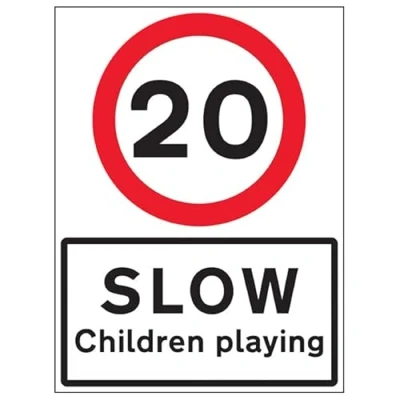 VSafety 20 MPH Children Playing 600x800mm Class RA1 Reflective 3mm Aluminium Composite With Fixing Channel Safety Sign