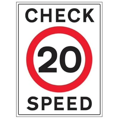 VSafety 20 MPH Speed Check 600x800mm Class RA1 Reflective 3mm Aluminium Composite With Fixing Channel Safety Sign