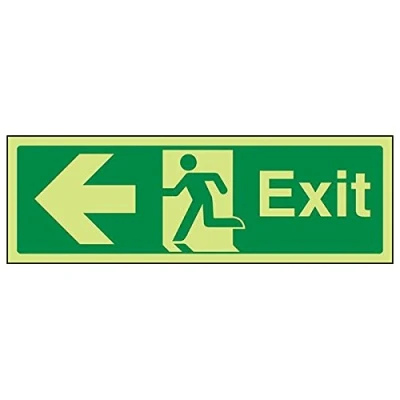 Helps to fulfil legal obligations to inform of the direction in which safety can be reached as per Health and Safety (Safety Signs & Signals) Regulations 1996 Conforms to EN ISO 7010:2012 by featuring a green background with a white pictogram or text positioned centrally Landscape Orientation. Sign reads "Exit" Highly durable Glow In The Dark 1mm plastic material and screen printed message will stand the test of time Sign measures 300 x 100mm.