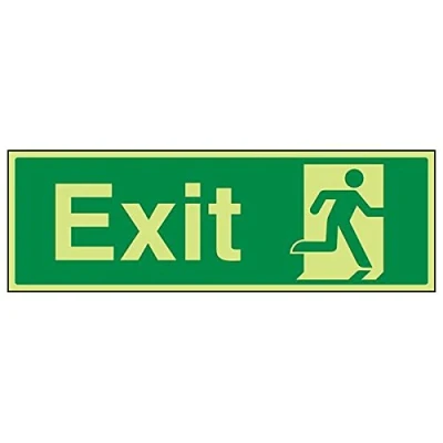 Helps to fulfil legal obligations to inform of the direction in which safety can be reached as per Health and Safety (Safety Signs & Signals) Regulations 1996 Conforms to EN ISO 7010:2012 by featuring a green background with a white pictogram or text positioned centrally Landscape Orientation. Sign reads "Exit" Highly durable Glow In The Dark 1mm plastic material and screen printed message will stand the test of time Sign measures 450 x 150mm.