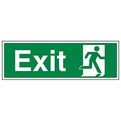 Helps to fulfil legal obligations to inform of the direction in which safety can be reached as per Health and Safety (Safety Signs & Signals) Regulations 1996 Conforms to EN ISO 7010:2012 by featuring a green background with a white pictogram or text positioned centrally Landscape Orientation. Sign reads "Exit" Highly durable Self Adhesive Vinyl material and screen printed message will stand the test of time Sign measures 450 x 150mm. Self Adhesive material will adhere securely to most surfaces