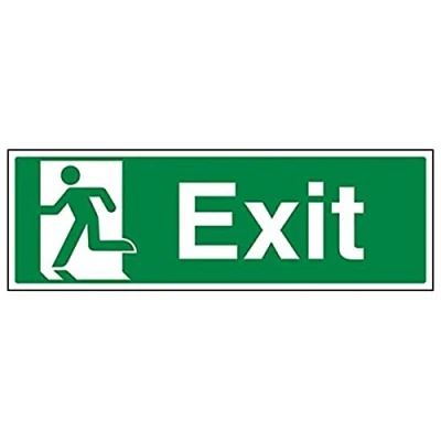 Helps to fulfil legal obligations to inform of the direction in which safety can be reached as per Health and Safety (Safety Signs & Signals) Regulations 1996 Conforms to EN ISO 7010:2012 by featuring a green background with a white pictogram or text positioned centrally Landscape Orientation. Sign reads "Exit" Highly durable Self Adhesive Vinyl material and screen printed message will stand the test of time Sign measures 450 x 150mm. Self Adhesive material will adhere securely to most surfaces