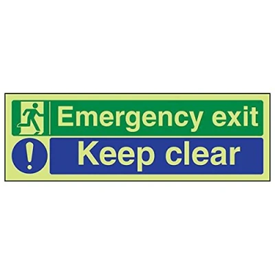 Helps to fulfil legal obligations to inform of the direction in which safety can be reached as per Health and Safety (Safety Signs & Signals) Regulations 1996 Conforms to EN ISO 7010:2012 by featuring a green background with a white pictogram or text positioned centrally Landscape Orientation. Sign reads "Emergency Exit. Keep Clear" Highly durable Glow In The Dark 1mm plastic material and screen printed message will stand the test of time Sign measures 300 x 100mm.