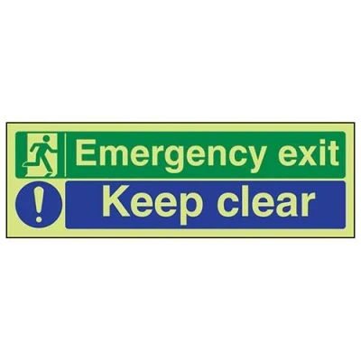 Helps to fulfil legal obligations to inform of the direction in which safety can be reached as per Health and Safety (Safety Signs & Signals) Regulations 1996 Conforms to EN ISO 7010:2012 by featuring a green background with a white pictogram or text positioned centrally Landscape Orientation. Sign reads "Emergency Exit. Keep Clear" Highly durable Glow In The Dark 1mm plastic material and screen printed message will stand the test of time Sign measures 600 x 200mm