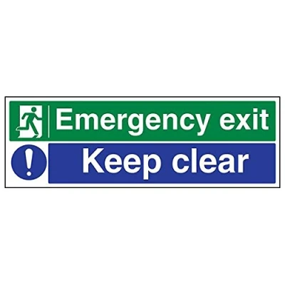 Helps to fulfil legal obligations to inform of the direction in which safety can be reached as per Health and Safety (Safety Signs & Signals) Regulations 1996 Conforms to EN ISO 7010:2012 by featuring a green background with a white pictogram or text positioned centrally Landscape Orientation. Sign reads "Emergency Exit. Keep Clear" Highly durable Self Adhesive Vinyl material and screen printed message will stand the test of time Sign measures 600 x 200mm. Self Adhesive material will adhere securely to most surfaces