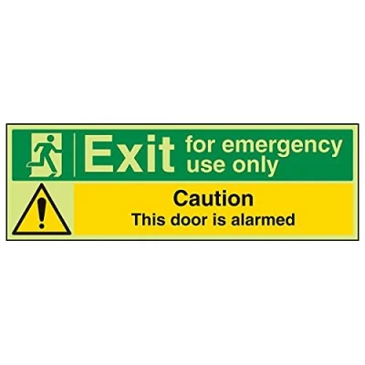 Helps to fulfil legal obligations to inform of the direction in which safety can be reached as per Health and Safety (Safety Signs & Signals) Regulations 1996 Conforms to EN ISO 7010:2012 by featuring a green background with a white pictogram or text positioned centrally Landscape Orientation. Sign reads "Exit For Emergency Use Only. Caution This Door Is Alarmed" Highly durable Glow In The Dark 1mm plastic material and screen printed message will stand the test of time Sign measures 600 x 200mm.