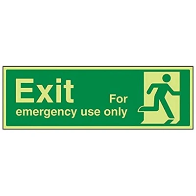 Helps to fulfil legal obligations to inform of the direction in which safety can be reached as per Health and Safety (Safety Signs & Signals) Regulations 1996 Conforms to EN ISO 7010:2012 by featuring a green background with a white pictogram or text positioned centrally Landscape Orientation. Sign reads "Exit For Emergency Use Only" Highly durable Glow In The Dark 1mm plastic material and screen printed message will stand the test of time Sign measures 450 x 150mm