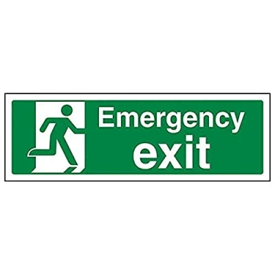 Helps to fulfil legal obligations to inform of the direction in which safety can be reached as per Health and Safety (Safety Signs & Signals) Regulations 1996 Conforms to EN ISO 7010:2012 by featuring a green background with a white pictogram or text positioned centrally Landscape Orientation. Sign reads "Emergency Exit" Highly durable Self Adhesive Vinyl material and screen printed message will stand the test of time Sign measures 300 x 100mm. Self Adhesive material will adhere securely to most surfaces