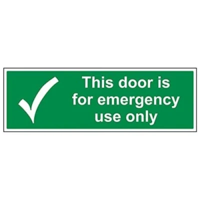 Helps to fulfil legal obligations to inform of the direction in which safety can be reached as per Health and Safety (Safety Signs & Signals) Regulations 1996 Conforms to EN ISO 7010:2012 by featuring a green background with a white pictogram or text positioned centrally Landscape Orientation. Sign reads "This Door Is For Emergency Use Only" Highly durable Self Adhesive Vinyl material and screen printed message will stand the test of time Sign measures 600 x 200mm. Self Adhesive material will adhere securely to most surfaces