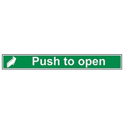 Helps to fulfil legal obligations to inform of the direction in which safety can be reached as per Health and Safety (Safety Signs & Signals) Regulations 1996 Conforms to EN ISO 7010:2012 by featuring a green background with a white pictogram or text positioned centrally Landscape Orientation. Sign reads "Push To Open" Highly durable Glow In The Dark 1mm plastic material and screen printed message will stand the test of time Sign measures 600 x 75mm.