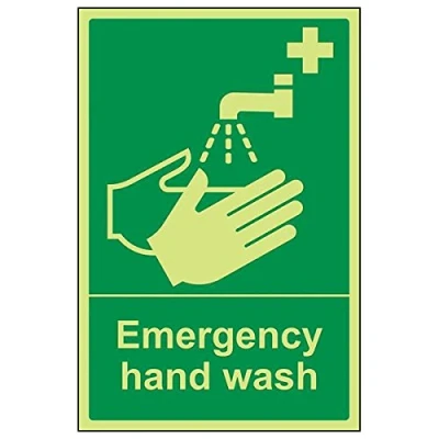 Helps to fulfil legal obligations to inform of the direction in which safety can be reached as per Health and Safety (Safety Signs & Signals) Regulations 1996 Conforms to EN ISO 7010:2012 by featuring a green background with a white pictogram or text positioned centrally Portrait Orientation. Sign reads "Emergency Hand Wash" Highly durable Glow In The Dark 1mm plastic material and screen printed message will stand the test of time Sign measures 200 x 300mm.